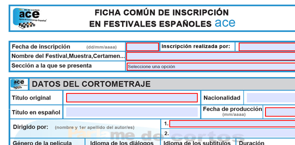 La Ficha Ace es una ficha opcional de inscripción al margen de la oficial de los festivales españoles y adoptada oficialmente por éstos, para agilizar la distribución y envío de documentación. La ventaja de esta ficha es que a vosotros os ahorrará el rellenar multitud de fichas diferentes.