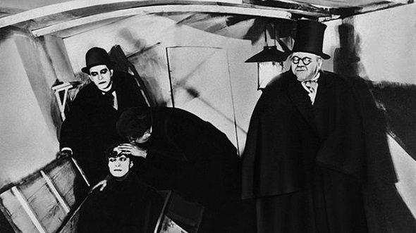 A través de varias de las escenas de la película, podemos estudiar las principales características del cine expresionista. Ligado al arte de manera irreversible, ya que todos los decorados fueron hechos por pintores como Hermann Warm, Walter Röhrig y Walter Reimann. Su estreno fue en blanco y negro, pero éstos trabajaron con el color muy de cerca, no siendo los decorados muy difrentes a sus cuadros. Escenografías completamente teatralizdas, con una estética completamente irreal que no tiene que ver con el mundo de los sueños, algo que posteriormente veremos en otras grandes obras maestras de la vanguardia (‘Un perro andaluz’), sino que son pesadillas, con actores muy maquillados e interpretaciones muy exageradas.