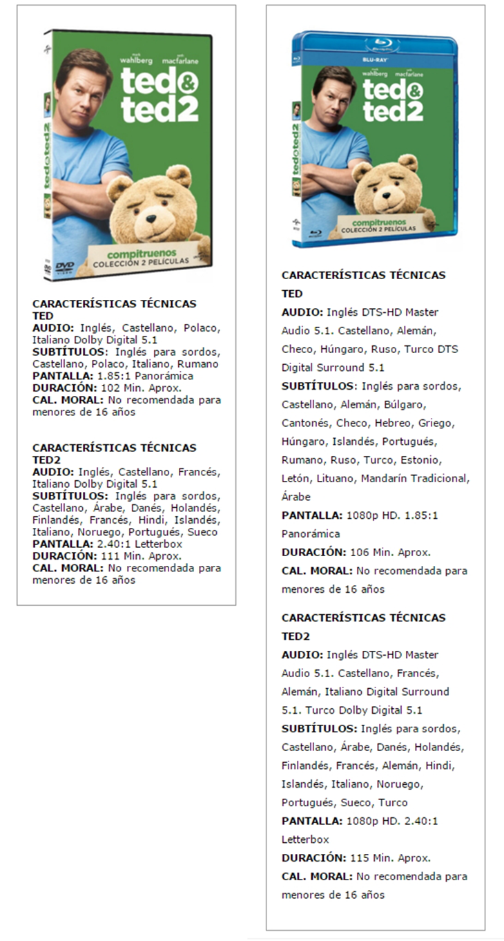 Además también se pueden comprar ambas películas en un pack, tanto en Bluray como en Dvd.