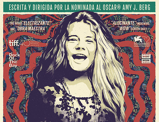 Sobre estas líneas descansa el el póster creado por el diseñador Álvaro Serrano en exclusiva para el estreno en España de ‘Janis’, el documental de Amy Berg (West of Memphis, Un secreto a voces…) sobre la legendaria Janis Joplin y narrado por Cat Power (Chan Marshall).