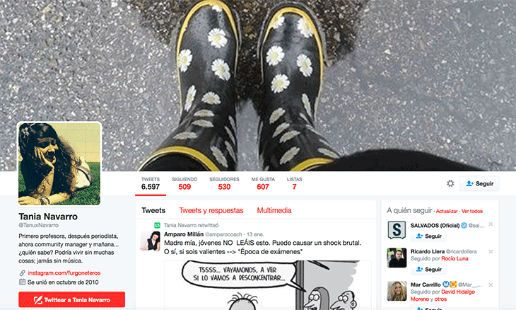 Hoy tenemos una mujer que aún no he tenido el placer de desvirtualizar, pero que gracias al maravilloso mundo de las redes sociales, he podido descubrir todos aquellos deportes que te hacen subir la adrenalina y ver su pasión por el mundo de la comunicación. Tania Navarro, es Assistant Product Manager en UNIR (Universidad Internacional de La Rioja) y según sus propias palabras: «…Ahora mismo puedo decir que estoy en una etapa muy bonita: soy una apasionada de la naturaleza, de los buenos momentos y casi experta en intentar aprovechar al máximo mi día a día, disfrutando de algunos hobbies que, aunque llegados un poco tarde, me llenan como nunca antes lo había hecho ninguna otra afición. Además, tengo la suerte de poder compartir dicha pasión con alguien, por lo que sólo le puedo pedir a la vida que me siga manteniendo esas ganas de vivirla. Aunque mi verdadera vocación fue la enseñanza, la vida me dio un giro cuando decidí cursar periodismo como segunda carrera, pues entré con una beca a una empresa del sector de internet donde aprendí muchísimo gracias al trabajo diario, la búsqueda constante de información y de ayuda por parte de compañeros del sector de las redes sociales. Actualmente me encuentro en un nuevo reto profesional del que espero poder aprender muchísimo para seguir evolucionando…»