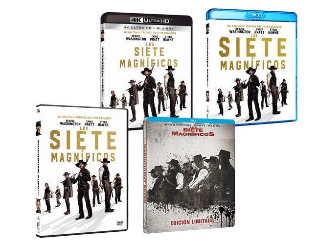 El director Antoine Fuqua, junto con un reparto estelar, nos trae una moderna visión del género western en ‘Los siete magníficos’ (Sony, 2016), que Sony Pictures Home Entertainment España en Blu-ray, DVD y 4K Ultra HD + Blu-Ray. El director de ‘Día de entrenamiento’ ha reunido a un reparto imbatible que incluye al dos veces ganador del Oscar Denzel Washington como Sam Chisolm, Chris Pratt en la piel de Josh Farraday, Ethan Hawke interpretando a Goodnight Robicheaux o Peter Sarsgaard dando vida al malvado Bartholomew Bogue.