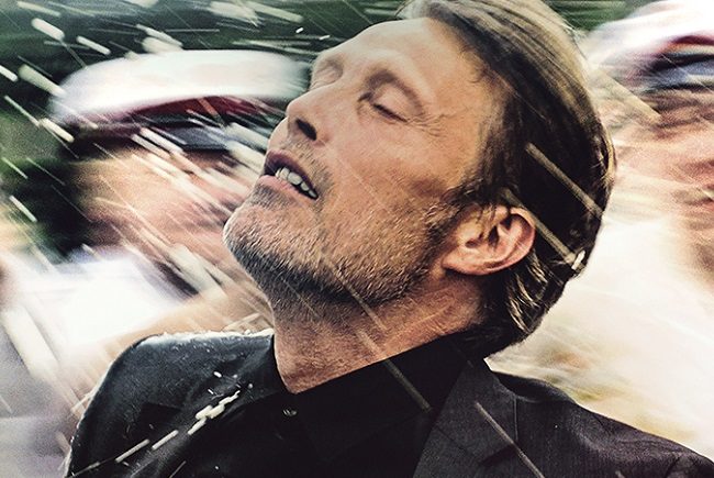 Mikkelsen está soberbio, arropado por las magníficas interpretaciones de sus compañeros de reparto, y formando una genial camarilla que nos va embriagando, y nunca mejor dicho, hacia el interior de la trama de la película. Es curioso cómo el actor, con un semblante tan peculiar, sea capaz de mostrar tantos matices tan inexpresivos como a la vez emotivos en el transcurso de la historia. Aporta una textura actoral muy particular y atractiva hacia un personaje en el sufrimiento de la vida. El semblante de la infelicidad.