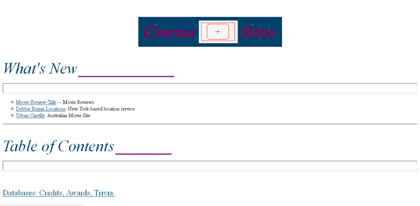 Esta ante la web de Cinema Sites, que más que un buscador como tal, es un directorio/listado de recursos cinematográficos online: enlaces sobre bases de datos, revistas, festivales, formación cinematográfica…
