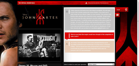 Con motivo del estreno en DVD y Blu-Ray de ‘John Carter’ (el 29 de Junio), en Noche de Cine tuvimos la gran oportunidad de participar en una Mesa Redonda Virtual (que tuvo lugar el 31 de Mayo) con Jim Sullos y Cathy Wilbanks.