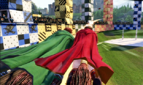 –Partido Quidditch, en el que los jugadores deben controlar una escoba voladora en su intento de esquivar oponentes y capturar el Snitch Dorado en un partido de Quidditch.