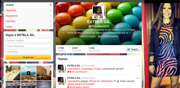 Desmontando y encontrando en la red a Estela Gil en su último proyecto 2.0 fisiobook, su perfil de facebook y por supuesto su loco twitter @PrincesaSEO