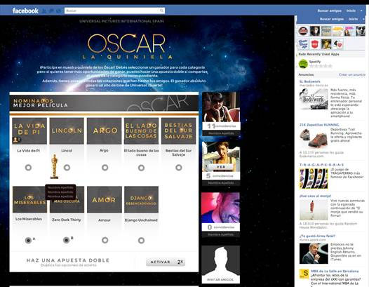 Universal Pictures te invita a participar en su quiniela de los Oscar a través de Facebook. ¡¡¡¡Y ganar un año de cine!!!!
