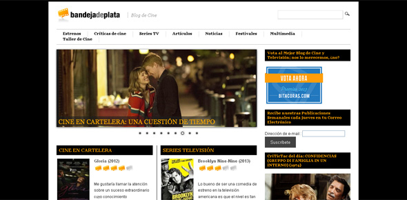 Bandeja de plata es un blog que cuenta ya con una amplía trayectoria en el que los colaboradores dan rienda suelta a su pasión por el cine. El equipo que se esconde detrás de las secciones de la bitacora se esmeran en mantener actualizadas las noticias, estrenos, críticas, series de tv, crónicas sobre festivales, etc.