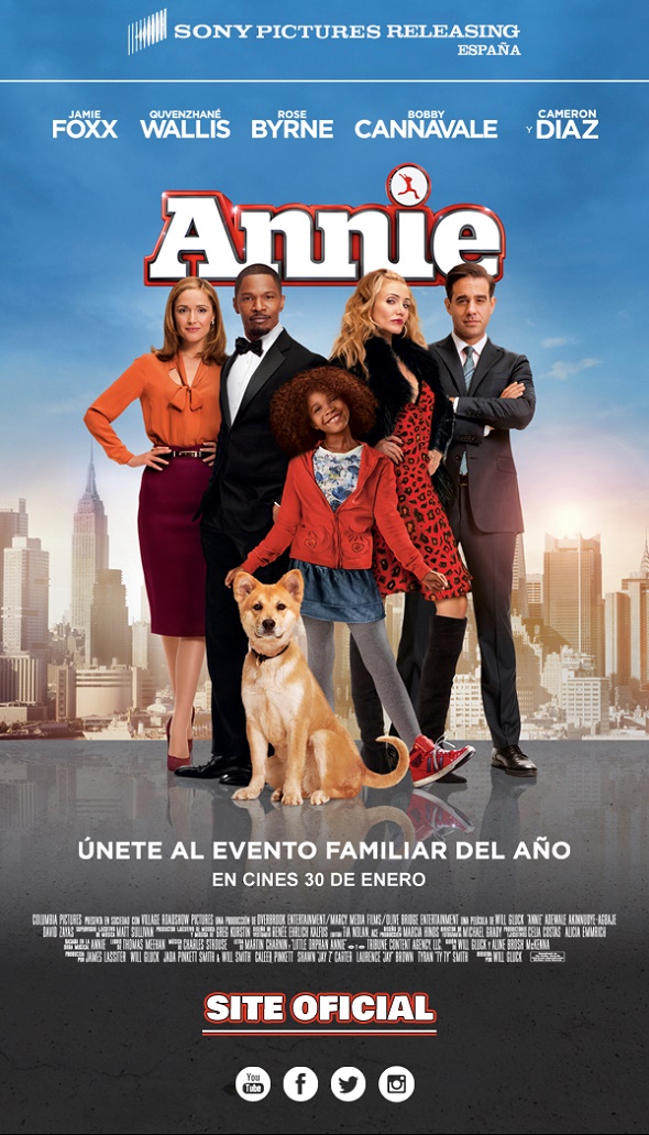‘Annie’ no necesita presentación porque es uno de esos inolvidables títulos de Broadway. Esta nueva comedia llegará a la pantalla grande el 30 de enero de 2014. Basado en el personaje de Harold Gray, realizador de la tira ‘Little Orphan Annie’ y en el musical estrenado posteriormente en 1977. La trama nos adentra en la historia de Annie, una niña que vive en un orfanato dirigido por la Señorita Hannigan. El filme ha sido dirigido por Will Gluck (‘Rumores y mentiras’), protagonizado por Quvenzhane Wallis, Jamie Foxx, Rose Byrne, Zoe Margaret Colletti, Cameron Diaz, Adewale Akinnuoye-Agbaje, Bobby Cannavale, David Zayas y Amanda Troya.