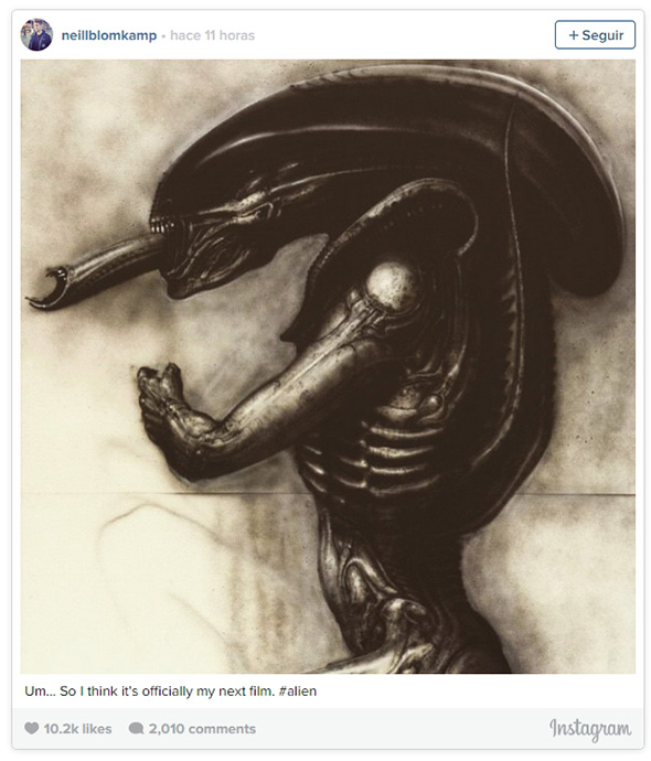 Imagen del Instagram de Neill Blomkamp, anunciando la nueva entrega de 'Alien'