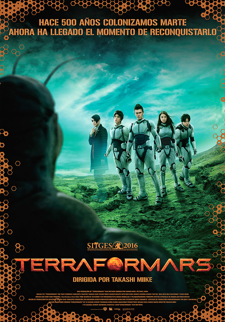 Basada en el manga homónimo creado en 2011 por la pareja creativa Yu Sasuga y Kenichi Tachibana, ‘Terra Formars’ ha sido un gran é,ito de ventas y de crítica, y considerado como uno de los mejores e,ponentes del cómic de acción cyber-punk. Una adaptación en acción real no podía tardar: Warner Bros. Japón, productores de la trilogía ‘Kenshin, el Guerrero Samurái’, entregaron las riendas del proyecto al maestro Takashi Miike (‘Crows Zero’), y éste puso rumbo a Islandia, lugar de rodaje de la película, con un casting de primerísimo nivel encabezado por Hideaki Ito (‘Lesson of the Evil’), Rinko Kikuchi (‘Pacific Rim’), Rila Fukushima (‘Lobezno Inmortal’), Takayuki Yamada (‘Crows II’), Emi Takei (‘Kenshin, el Guerrero Samurái’), y Shun Oguri (‘Lupin y el Corazón Púrpura de Cleopatra’).
