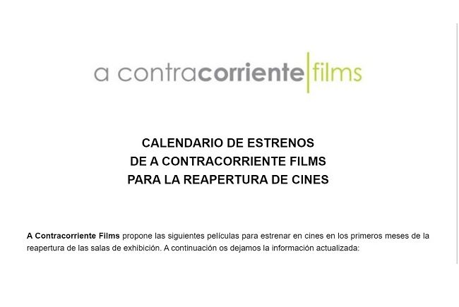 A Contracorriente Films propone las siguientes películas para estrenar en cines en los primeros meses de la reapertura de las salas de exhibición. A continuación os dejamos la información actualizada: